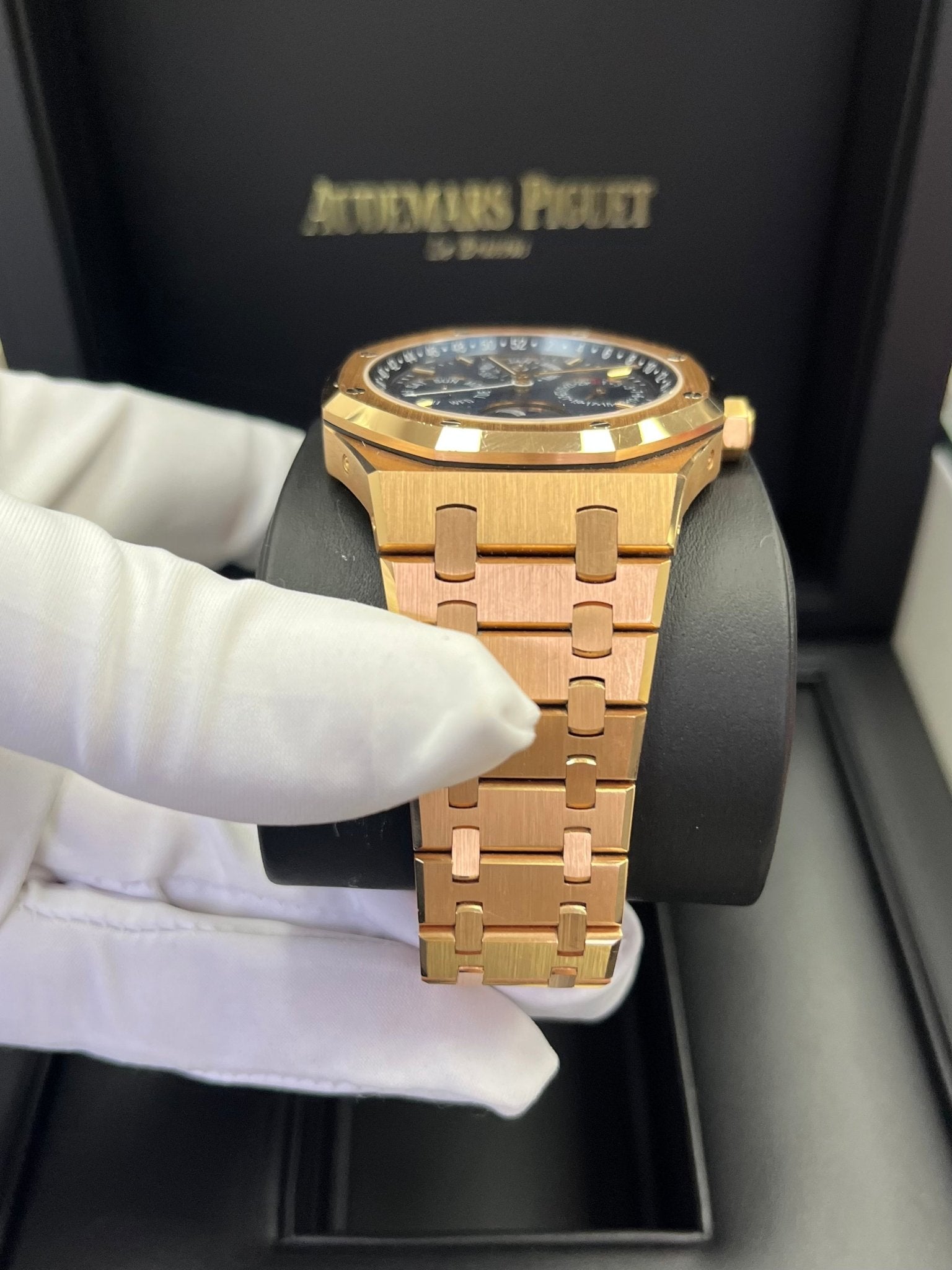 Audemars Piguet Royal Oak Perpetual Calendar/ 18k Rose Gold/ Blue Dial/ Blue Sub-Dials (Ref#26574OR.OO.1220OR.02)