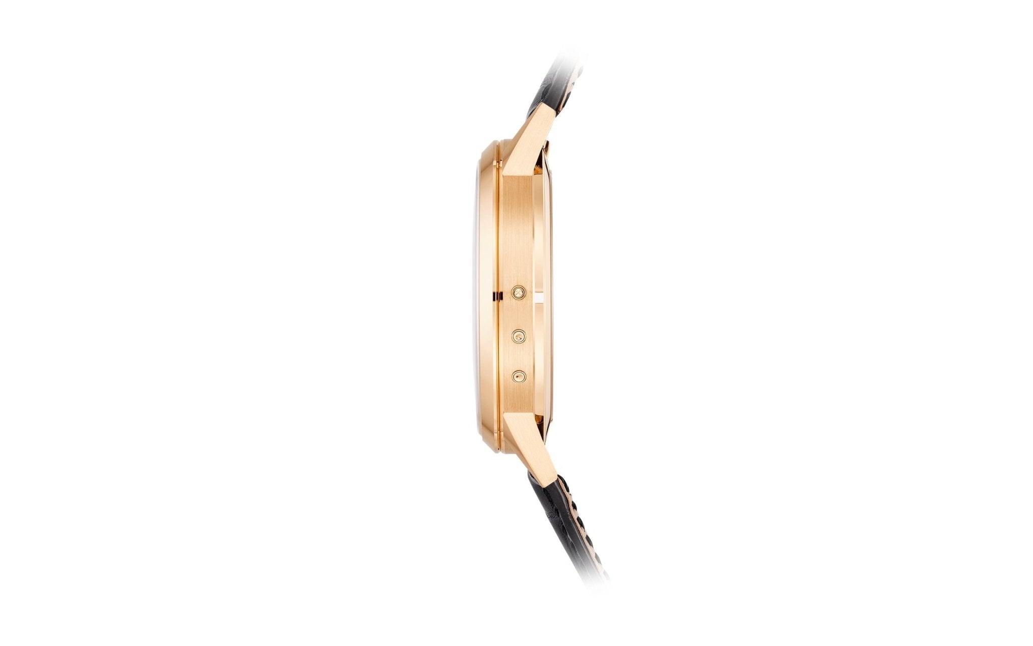 Rose gold. Sapphire crystal case back. Water-resistant to 30 m. Diameter: 40.5 mm. Height: 10 mm.